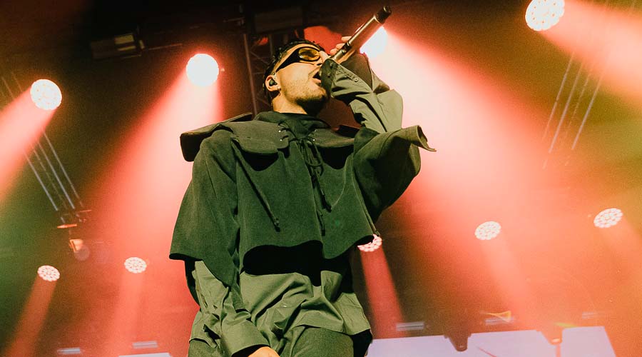 Desde el primer acto, Alvarito estableció el tono de la noche con “TE VI EN MIS PESADILLAS”, marcando el inicio de una travesía oscura y personal. Acompañado por la inteligencia artificial S1TA, el artista guió al público por un universo post-apocalíptico donde la memoria es frágil y los recuerdos pueden ser eliminados.