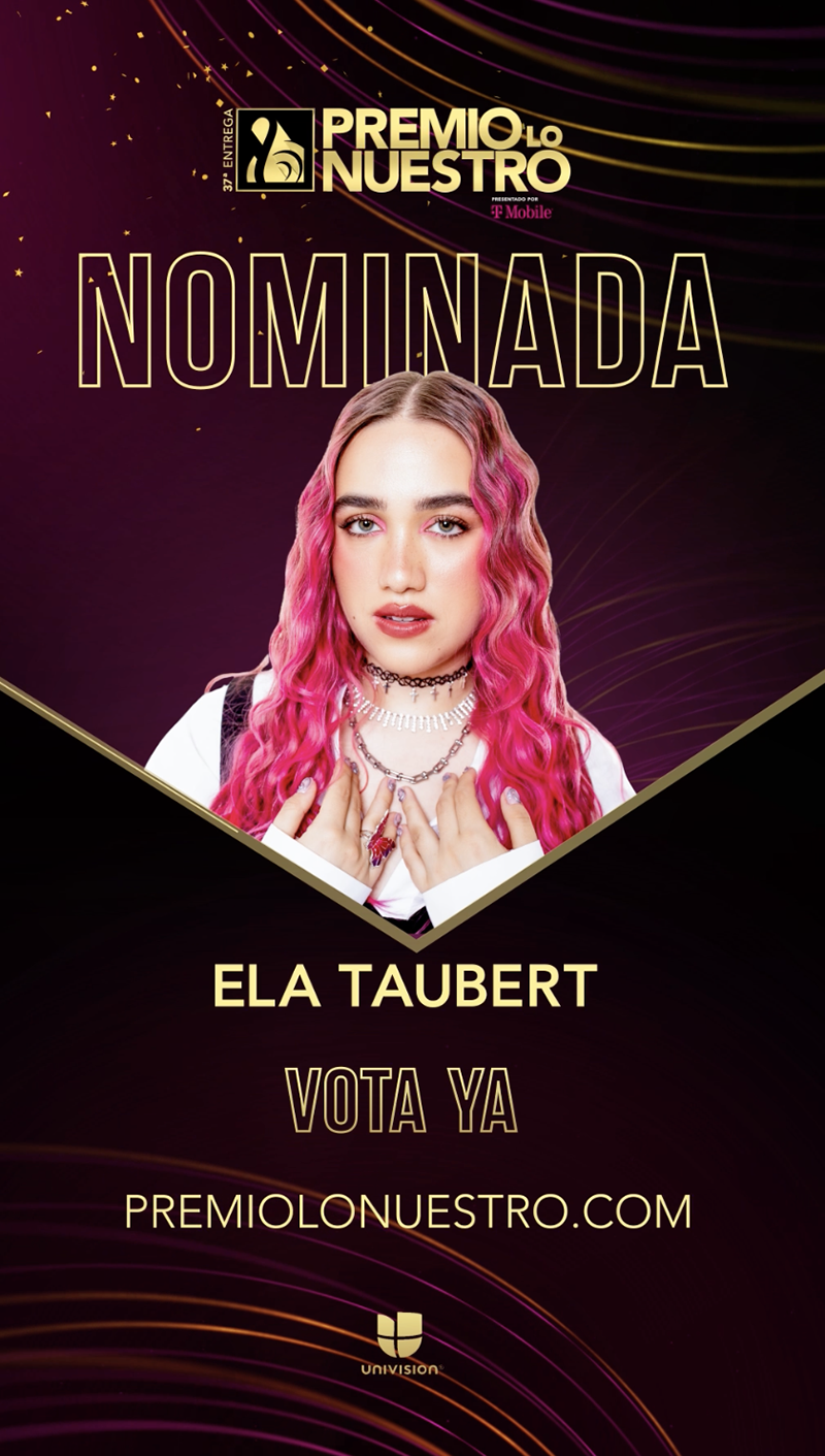 Esta mañana, la ganadora del Latin GRAMMY®, ELA TAUBERT, recibió sus primeras nominaciones de 2025 en dos prestigiosas ceremonias de premios del mercado latino y anglosajón.