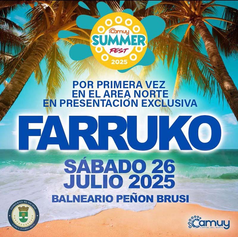Farruko, una de las figuras más influyentes de la música urbana, empresario y líder del sello Carbon Armor, vivió un fin de semana inolvidable en su natal Puerto Rico, donde encabezó la cartelera musical del aclamado “Camuy Summer Fest 2025”, celebrado del 25 al 27 de julio en el balneario Peñón Brusi. El evento gratuito, impulsado por el alcalde Gabriel Hernández Rodríguez con más de 40 auspiciadores, reunió a miles de asistentes con música en vivo, deportes, gastronomía y actividades para toda la familia.Farruko se presentó el sábado 26 de julio a las 7:00 p.m., acompañado de Makaco El Cerebro, con quien interpretó el tema “Abatido” y parte del nuevo repertorio de ambos. El público vibró con un show histórico que concluyó con el artista bajando al público para compartir fotos y momentos de cercanía.