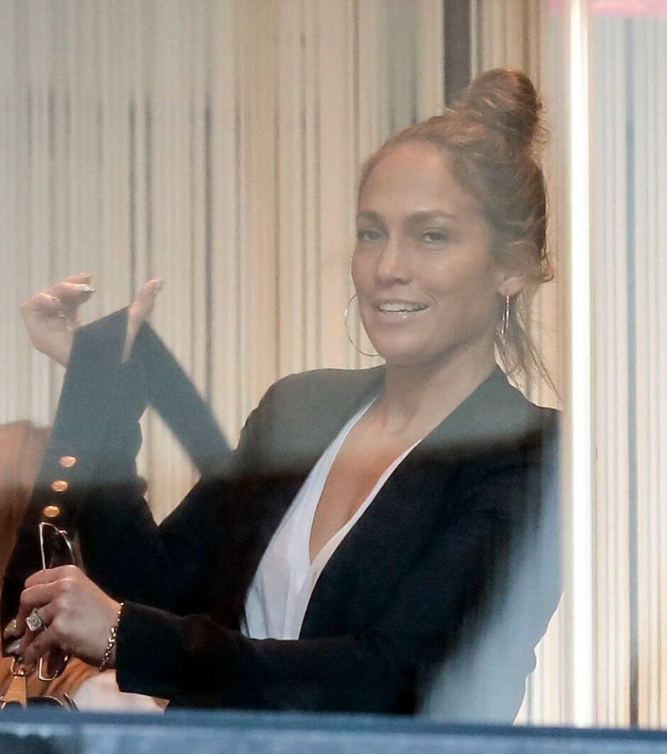 Pero lo que los fotógrafos no dejaron pasar fue la imagen de JLo sin la protección del maquillaje.