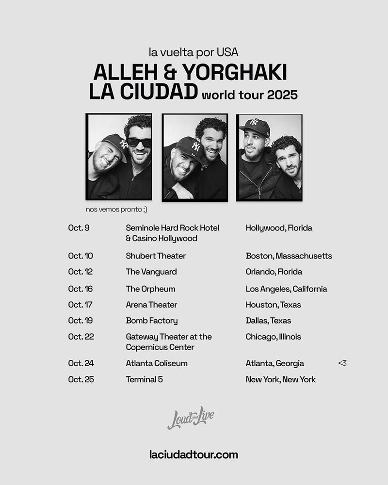 “Estamos muy emocionados de dar la bienvenida a ALLEH & YORGHAKI a la familia de Loud And Live mientras inician su tan esperada gira por Estados Unidos, La Ciudad. Su música, arte y pasión resuenan profundamente con fans de todo el mundo, y es un honor para nosotros ser parte de este nuevo capítulo en su carrera”, afirmó Nelson Albareda, CEO de Loud And Live.
