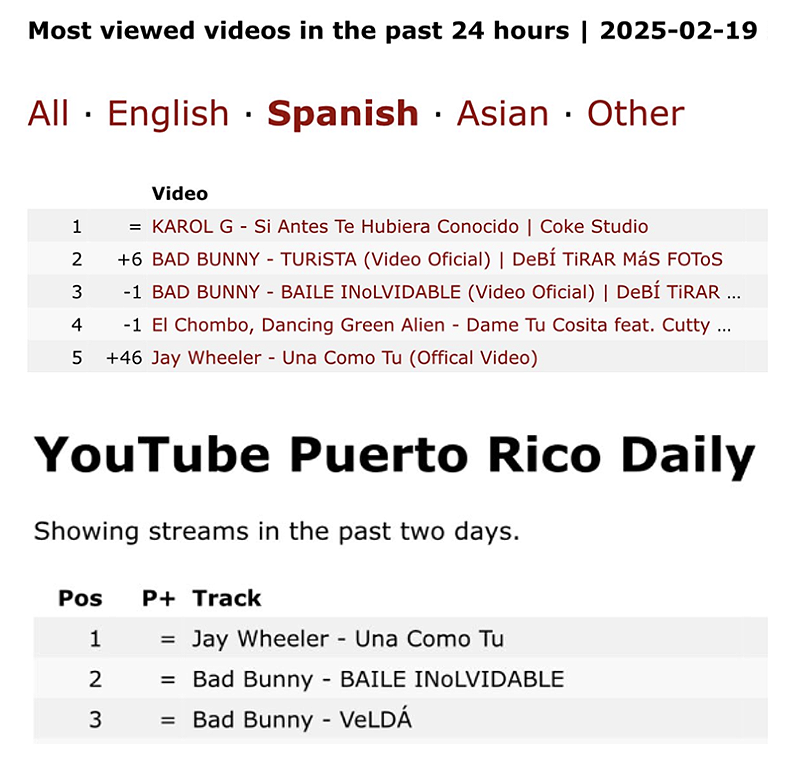 “Una Como Tú” de Jay Wheeler alcanza el éxito global: Top 5 en YouTube y #1 en Puerto Rico